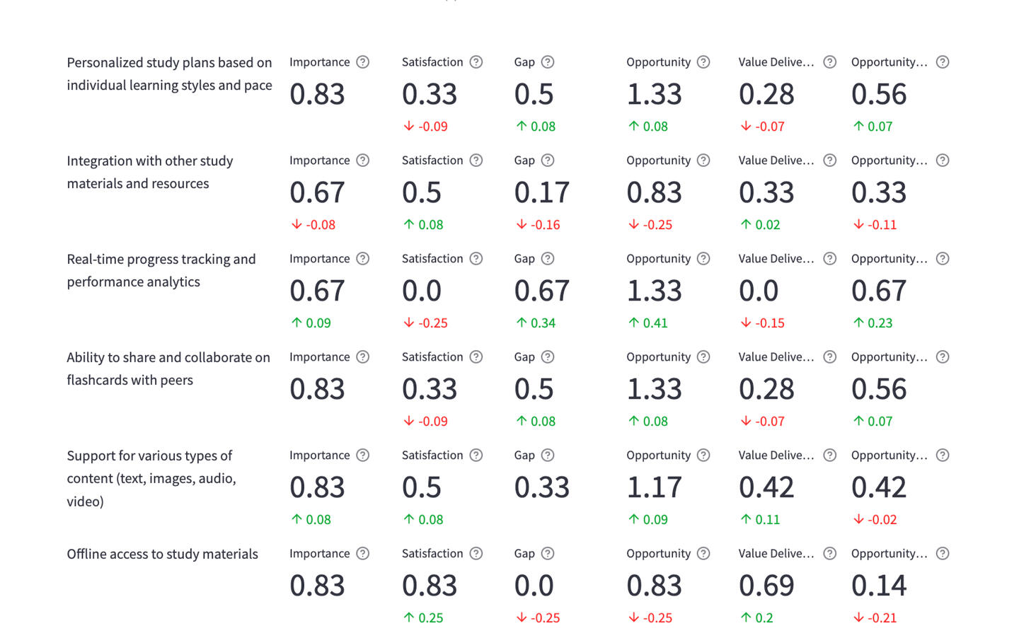 Based on your idea, Evalidea proposes important customer needs, then measures the opportunity and value using Lean Product Development principles and best practices.